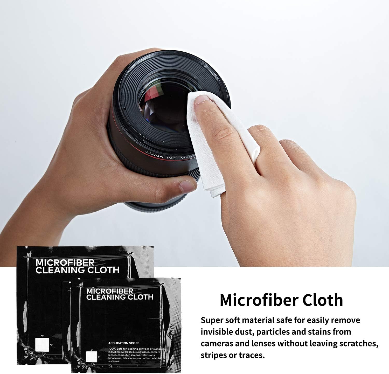 – **Premium Microfiber Cloths:** Ultra-soft and highly absorbent, these cloths effectively remove fingerprints, smudges, and dust from your camera lenses and screens without leaving any residue.